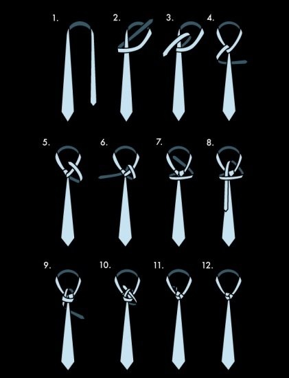 Trinity Knot的前面幾個步驟有點類似溫莎結的打法,只不過溫莎結是用領帶粗的那一頭來打,而Trinity Knot用的是領帶較細的那一頭來打領帶結。9和10兩個步驟是最關鍵的步驟,系的時候要將領帶面舒展整齊,不然最后的領帶結效果會顯得皺巴巴。