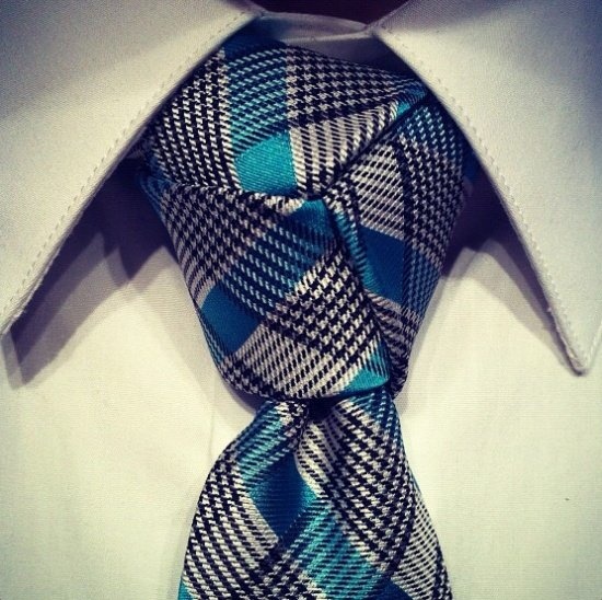 溫莎結的關鍵就在于,要在領帶結的兩邊都繞一個圈,這樣一來領帶結就被填充得特別飽滿,不像其他領帶結那樣小只,而且三角形不對稱。溫莎結適合寬領襯衫,佩戴時要把領帶結的兩頭藏在襯衫領子下面,填充出一個完美的領帶結三角區。